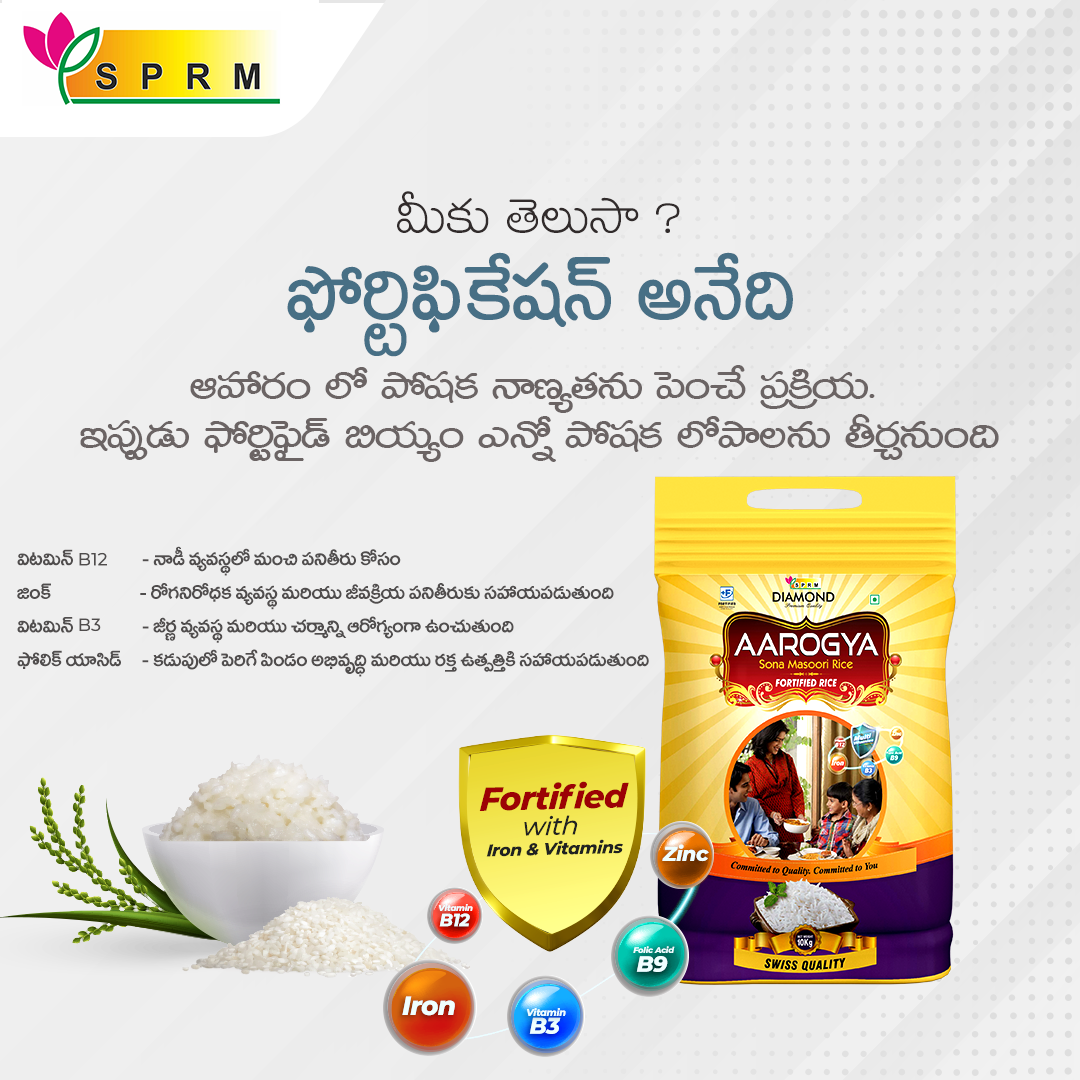 Aarogya Fortified Rice is a premium rice variety specially fortified with essential nutrients to enhance its nutritional value.